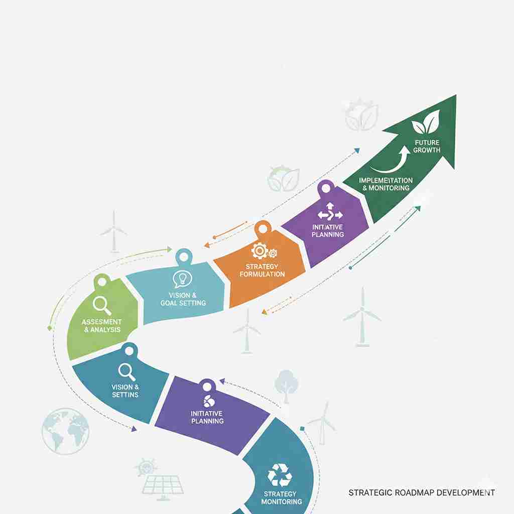 Designing actionable, time-bound sustainability roadmaps that integrate policies, targets, and implementation plans across business operations.